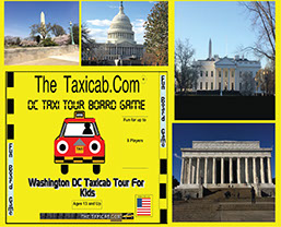 Educational and Fun Board Game for Kids and Adults to learn Washington DC playing a taxiab driver